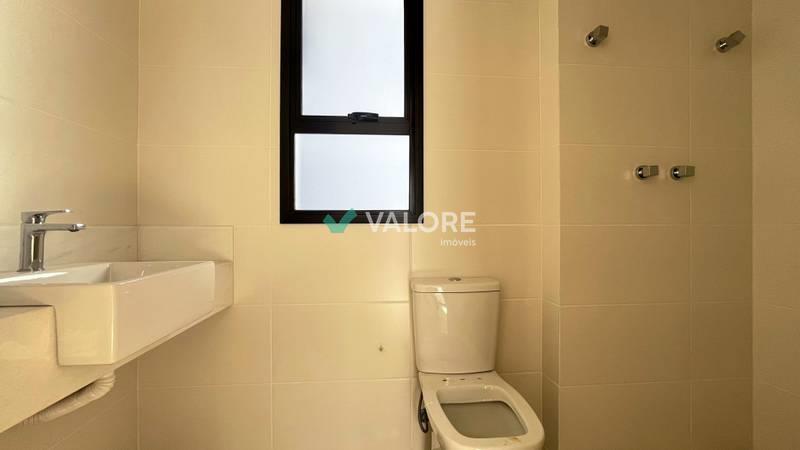 02 quartos amplos com piso em vinílico de madeira, todos com acesso a varanda, sendo uma suíte com pia em cuba