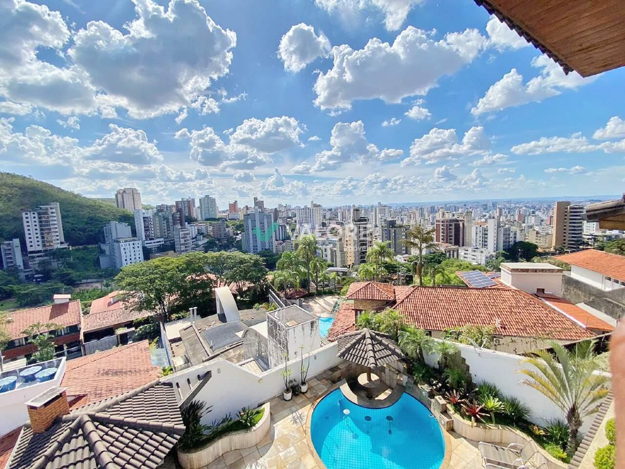.Varanda grande fechada com blindex, vista panorâmica para Serra do Curral.