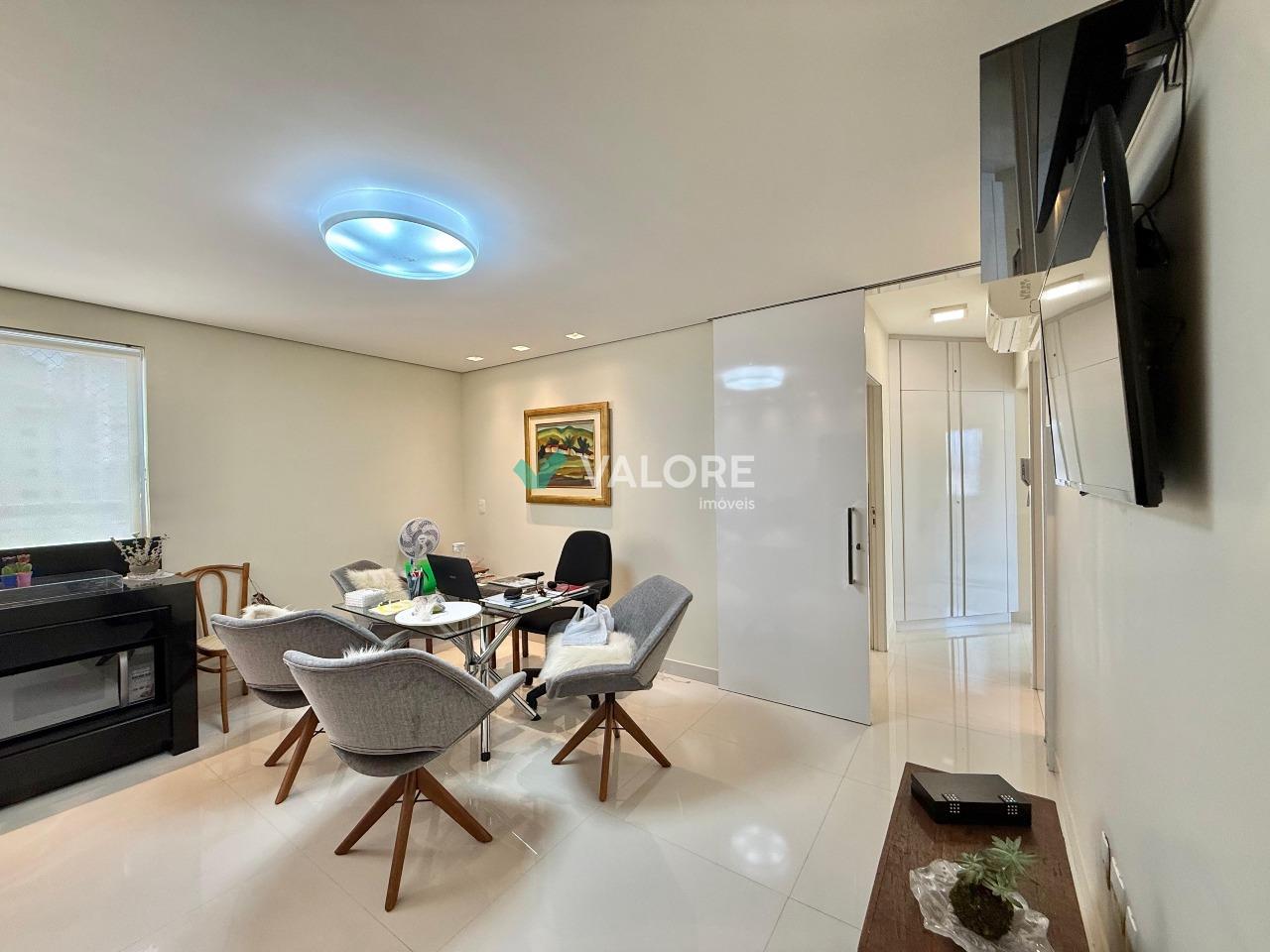 .Sala conjugada com cozinha de apoio piso em porcelanato e bancada em granito;